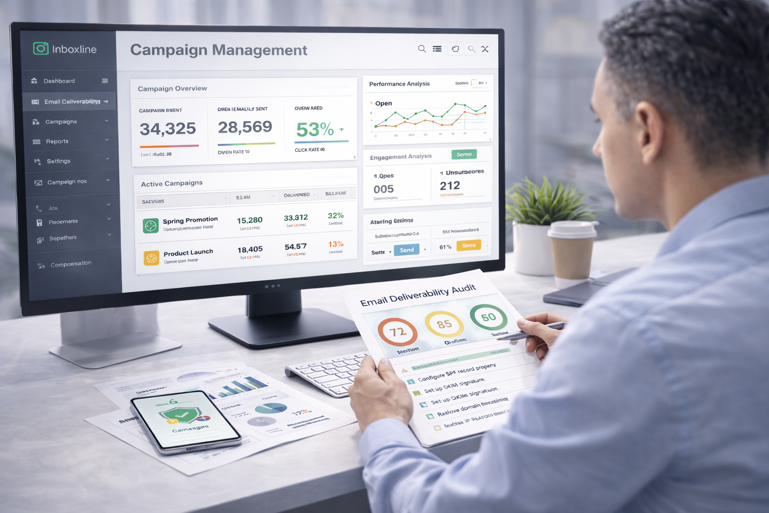 Boost Your Email Campaign Reach more inboxes with powerful email marketing tools to drive engagement and increase conversation. Click here Send high-volume email campaigns with confidence and reliability. About Inboxline We Deliver Reliable Inbox Placement & Email Performance Email success isn’t about sending more messages — it’s about making sure the right messages reach the inbox. Inbox & Spam Placement Analysis Domain Warm-Up & Reputation Protection Authentication & Compliance Setup Continuous Monitoring & Optimization About Us Our Services Expert & Reliable Email Deliverability Solutions You Can Trust We help businesses protect sender reputation, improve inbox placement, and ensure emails consistently reach the right audience. Inbox PlacementWe optimize email delivery to ensure your messages land in the inbox, not spam. Read More -> Reputation ProtectionProtect and strengthen your domain and sender reputation for long-term email success. Read More -> Email AuthenticationProper setup of SPF, DKIM, and DMARC to ensure secure and trusted email sending. Read More -> Deliverability MonitoringContinuous monitoring and optimization to maintain consistent email performance. Read More -> Trusted by clients for reliable email deliverability and consistent inbox performance 0 % What We Do Professional email deliverability solutions for consistent inbox placement. Custom Email PlatformTailored email infrastructure built for performance and scale. Email Deliverability ConsultancyExpert support to improve inbox placement and sender reputation. Email Deliverability AuditDetailed review of your setup to identify and fix deliverability issues. Campaign ManagementManaged email campaigns focused on performance and reliability.